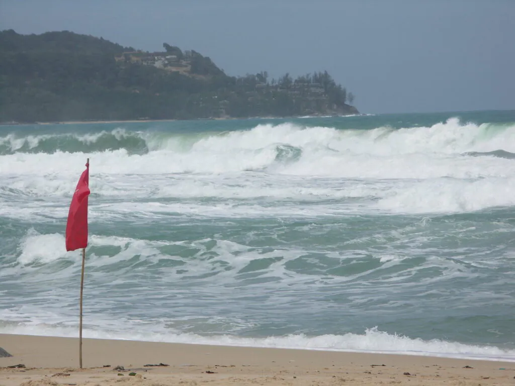 Самая частая причина неприятностей на пляже это обратные течения. Они выглядят как обычная вода, но могут быстро унести человека от берега. На Пхукете это особенно актуально на пляжах западного побережья: Карон, Ката, Най Харн, Сурин.