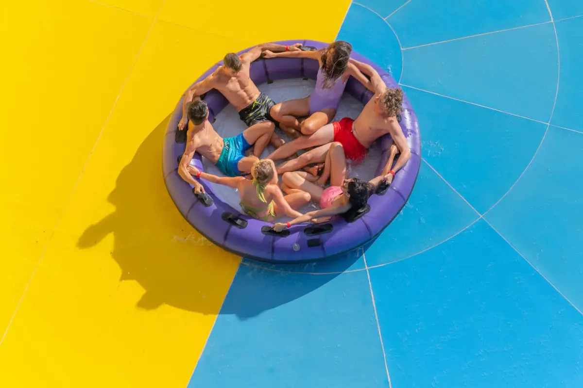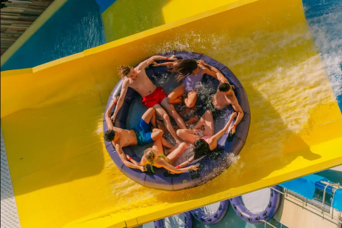 The water park is open, new. Water slides and a children's town. A pool with a wave. A river with a current. Jacuzzi and sauna.
