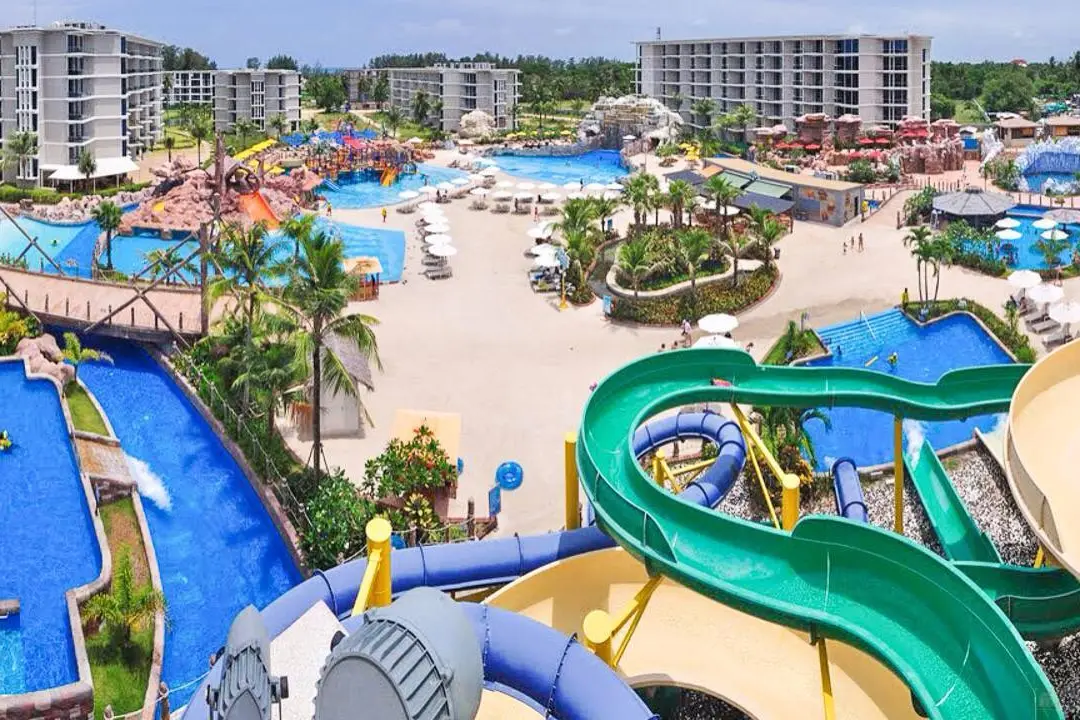 The "Splash Jungle" Water Park is located within Splash Beach Resort near the airport area.