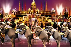 This palace hosts the main show, seating 3,000 guests. The spectacular theatrical performance is based on the legend of Prince Kamala, who rescues his beloved from evil spirits with the help of a sacred elephant. The show features traditional Thai dances, special effects, pyrotechnics, an elephant performance, as well as acrobats, clowns, illusionists, and gymnasts. The performance is in both English and Thai, with emotions and feelings conveyed through music.