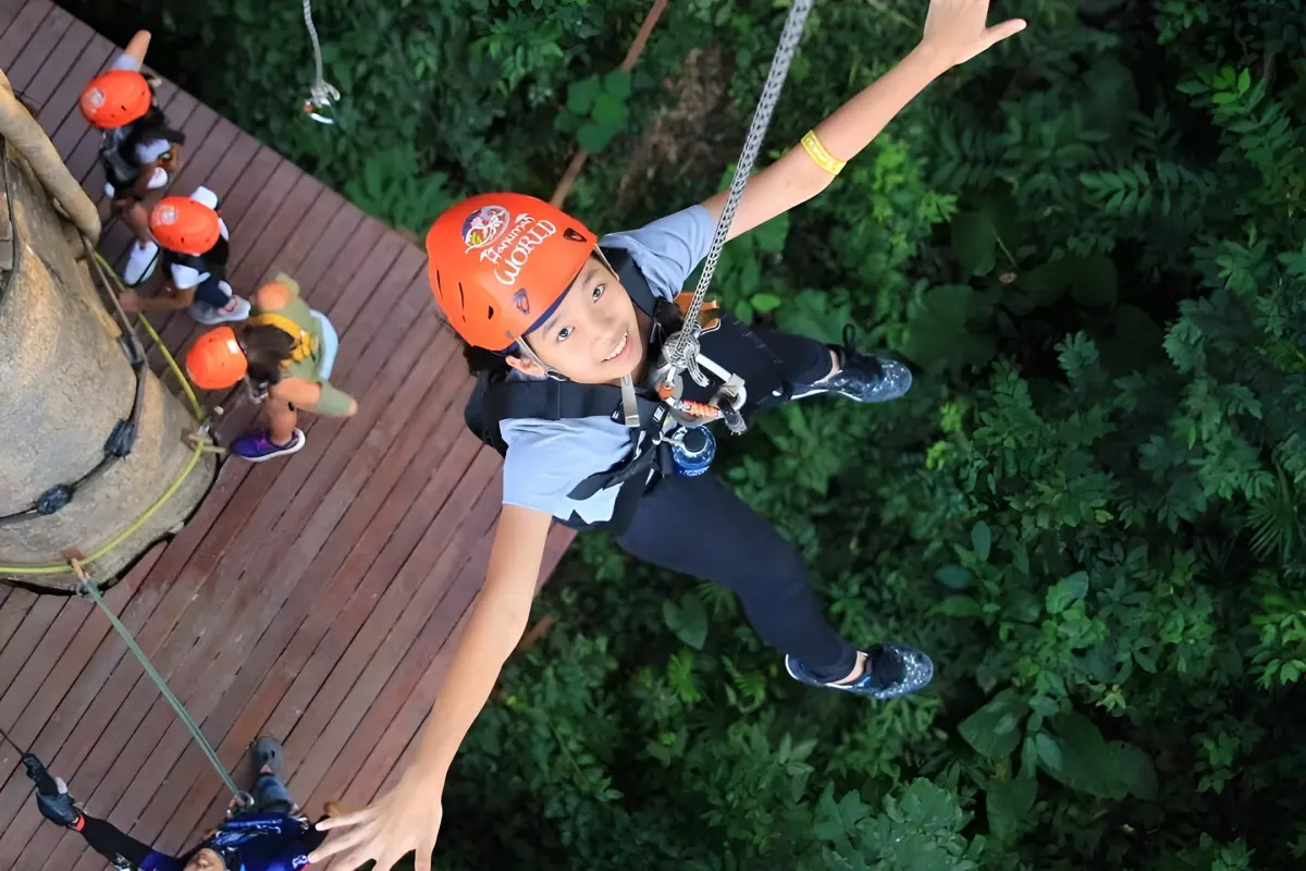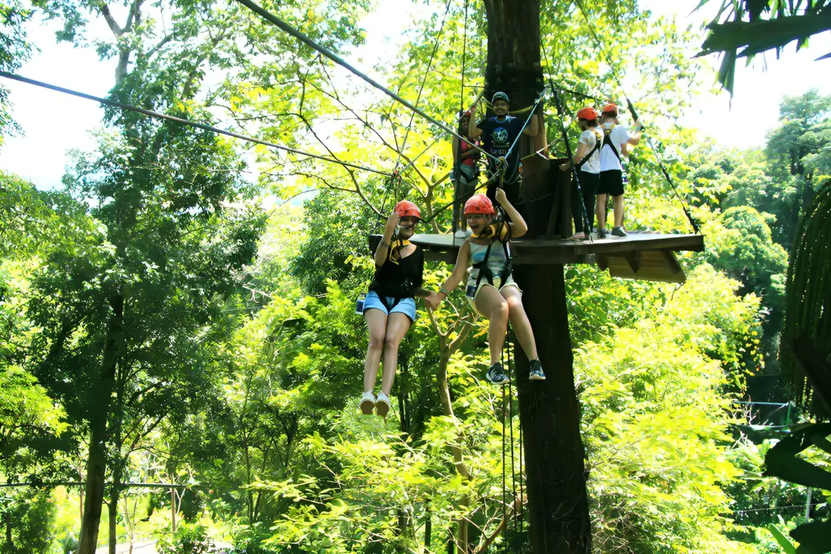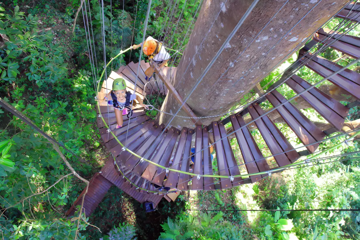 Exciting adventure in the jungle with stunning views! Reliable French equipment from PETZL with a double safety system and experienced instructors.
