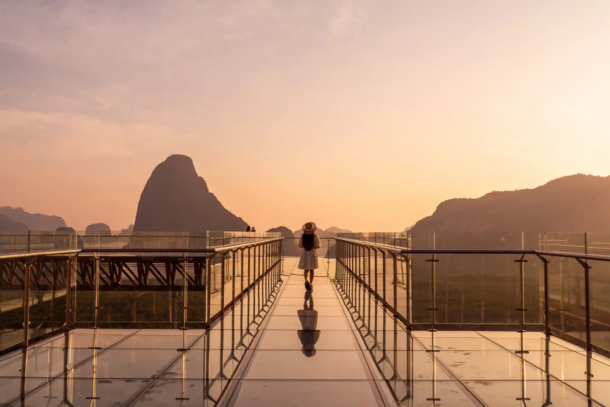 An ideal tour for families with children and a perfect introduction to Thailand! You'll experience the local wildlife, watch the sunrise from a glass bridge, and enjoy a delicious breakfast with breathtaking views. The program includes a wooden Thai longtail boat ride through Phang Nga Bay, a jungle walk, bamboo rafting, swimming with elephants, a baby elephant show, and a refreshing dip in a waterfall. The tour is conducted in a small group (5-11 people) with a Russian-speaking guide.