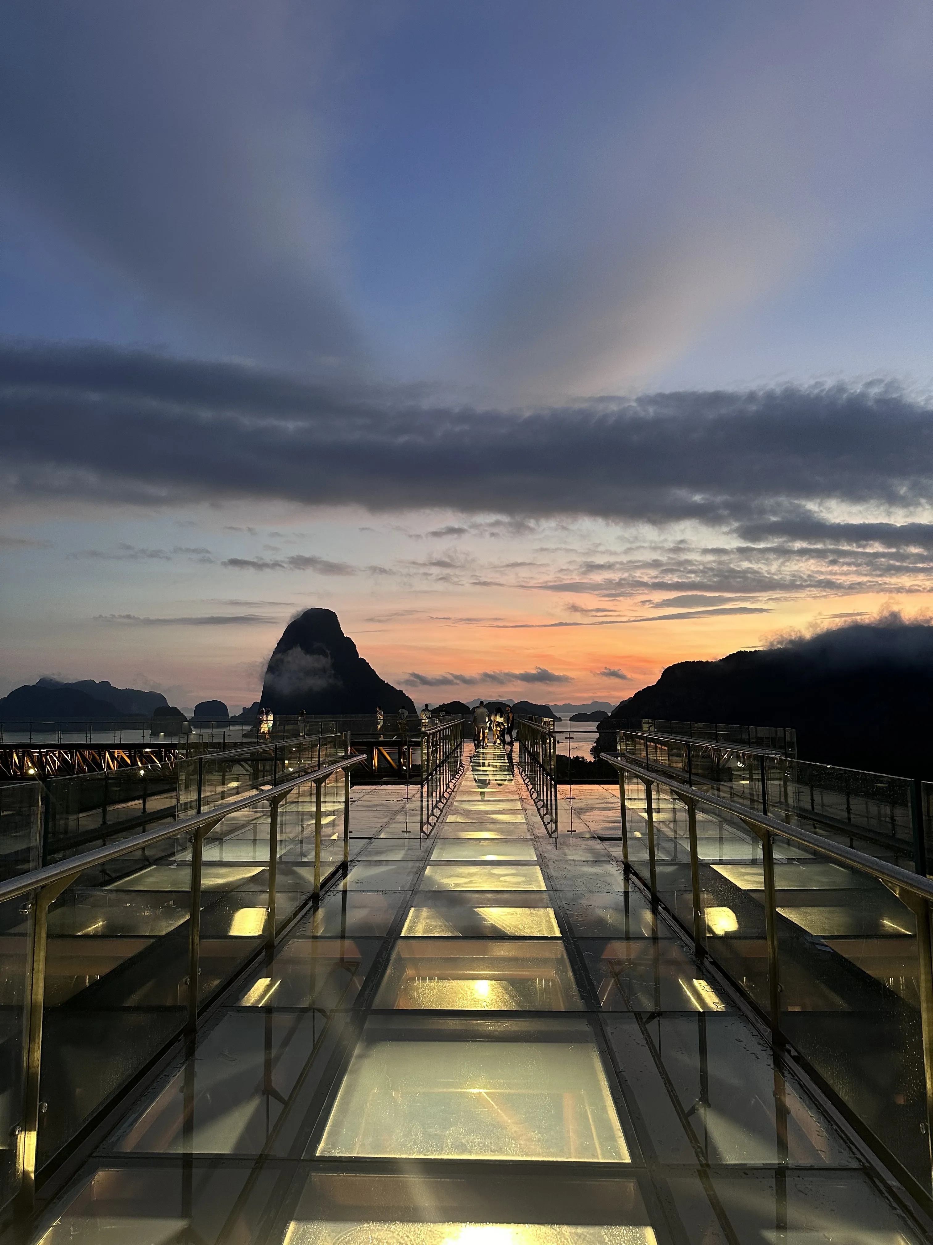 Watch the sunrise from the glass bridge. Breakfast.