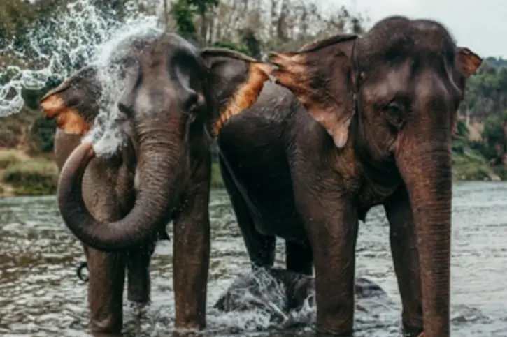 Coating the elephants with mud and clay, then you can wash the elephant with water, rub its skin.