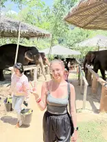 I really enjoyed the tour. We only had a feeding, but that was enough. Elena, the amazing guide, told us about each elephant, where they were rescued from, their personalities, ages, how much they eat, and so on. I learned a lot and was so impressed. I want to go again now; there are tons of great photos. The best part is that they don't abuse the elephants here; everything is clean and tidy, and the elephants look great. P.S. Please don't ride the elephants 🙏