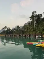 We went with guide Ksenia on the Secret Lake tour on March 4, 2026, and were absolutely blown away! The lake and cliffs are incredibly beautiful; it feels like you're in Avatar. The lake houses where we stayed overnight were beautiful, with direct access to the lake from our room, where you can swim and watch the sunrise. On the first day, we visited two temples and a waterfall (but we could have skipped that part 😆), then arrived at the pier and took a traditional boat ride across the lake to the houses. At 5 a.m., we went on a safari, but we didn't see any elephants. We rode around the lake and watched the sunset—it was all very beautiful. Dinner and rest followed in the evening. On the second day, we woke up early to watch the sunrise. At 7 a.m., we went on a nearby boat to look for elephants, but we didn't see any. We watched monkeys instead. Then we had breakfast and headed back to the pier. Next, we went rafting through the jungle - it was fun, very interesting, and colorful. Then we stopped at the Samit Nangshe lookout point and sat in a cafe with a beautiful view. 😍 Our guide, Ksenia, told us a lot: about Thailand, traditions, Buddhism, food, etc. Our group was small, and everything went very well. The food was also delicious, traditional Thai food and fish.