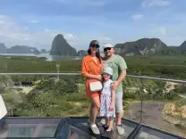 Today we took a new signature tour from Treasure Island – The Glow of Andaman. Our guide, Alina, talked about Thailand, Thai life, culture, and religion the entire way to the first location. The first stop was a snow-white Buddhist temple. Next, we visited the Beyond Skywalk observation deck. The numerous islands scattered across the bay are unforgettable. After visiting the glass bridge, we boarded a long-tail Thai boat and stopped near the famous James Bond Island. We had lunch at a floating sea gypsy village, and then visited a bat cave. Today's tour concluded with a sighting of glowing plankton. Today, spent with Alina, the best guide, we learned so many interesting facts about Thailand.