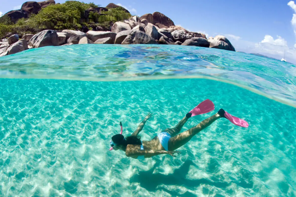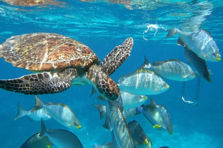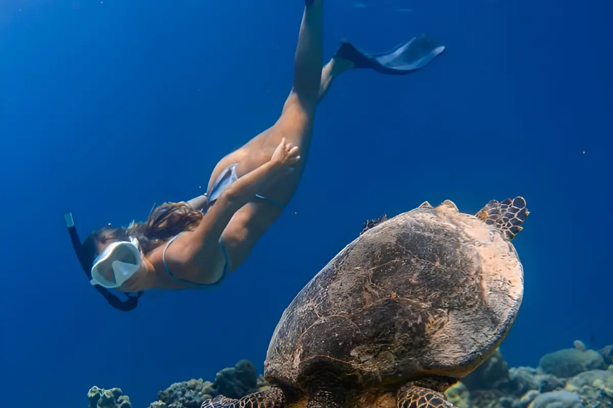 12:30 Snorkeling at Island No. 9 (Ba Ngu): swimming with a mask and snorkel among colorful fish, corals, and sea turtles.