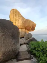 After the viewpoint, guests still have time to relax on the beach. Snow-white sand, crystal-clear water, and oddly shaped granite boulders create the feeling of an untouched tropical paradise. Here you can swim, stroll along the shore, or simply enjoy the silence: the absence of urban infrastructure makes it easy to fully switch off and feel a rare harmony with nature.