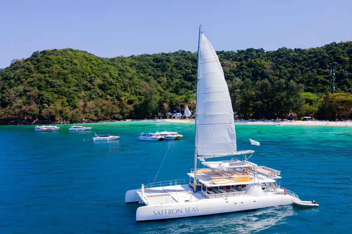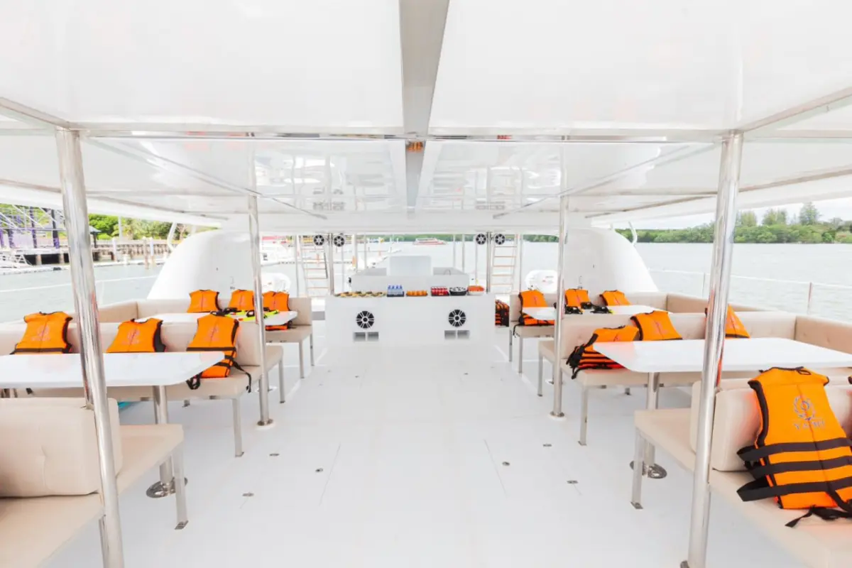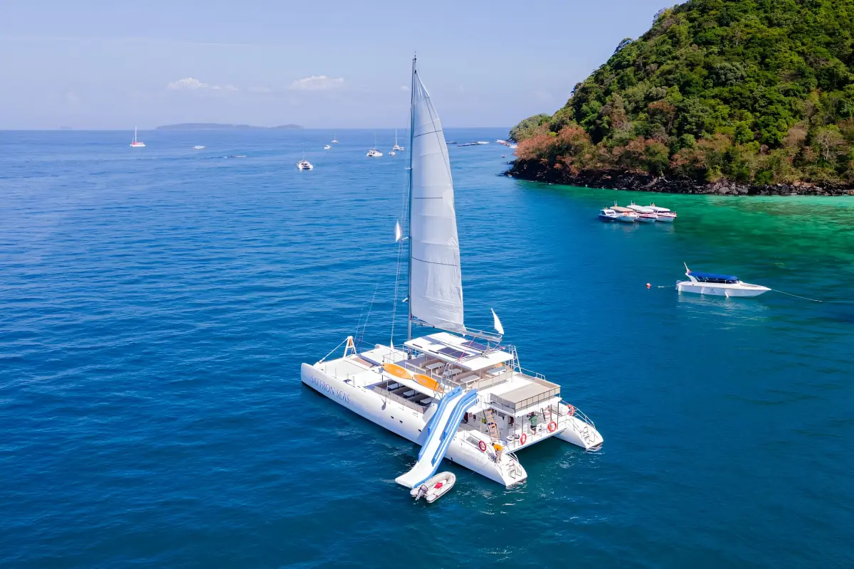 I am writing a real honest review as requested) an excursion for those who want to visit another island and chill there, and naturally meet the sunset, nothing more. For me it was boring ... and we did not fit into the timing at all, but ... in order. If you do not understand English, then it will be difficult with an English-speaking Thai guide. He explained the route to us and it was difficult to understand something (but this is our omission). They delivered us, sat us down, he told and explained a lot. The team and the catamaran itself are excellent (comfortable, super friendly team, helped take photos, allowed smoking in designated areas, well done in short). Then the path and the island with snorkeling (masks and vests are provided), but since this is a "public" undoubtedly beautiful beach there with a mask you will find 2-3 fish (and some bite 😂), it was necessary to look for fish and corals, and the place for swimming is purely designated, you go beyond the border they scold. Then we chilled from 14-17:20 on the beach (maybe the guide explained the reasons for the delay, but we didn't understand at all). According to the plan, we were supposed to set off at 16:00 and also make a stop for swimming, this did not happen. We embarked at 17:20, had dinner (all the dishes were delicious, the fruits were delicious, no questions) and in the process sailed towards the sunset. And this path pulled out the whole trip 😂 the view is awesome, the fact that you are on a big catamaran sailing towards the sunset is cool!!) We sailed, circled around the island, said goodbye to the sun and went home) In general, we went for snorkeling, which was completely useless, but the sunset, the kitchen, the team and the catamaran pulled it up) Something like that.