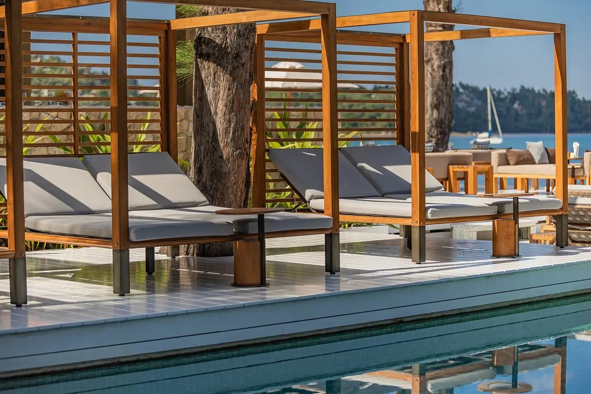 Откиньтесь на больших лежаках с потрясающим видом на океан или расслабьтесь в уютной беседке у бассейна, попивая авторские напитки и создавая незабываемые воспоминания.