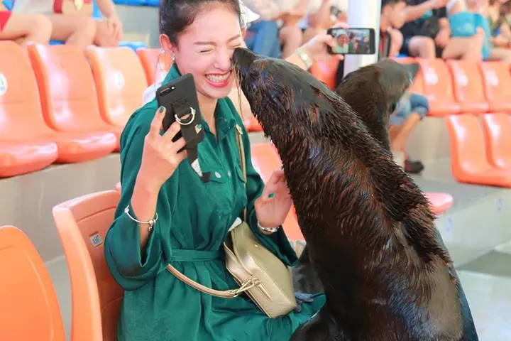 Зрители первых рядов могут быть обрызганы дельфинами и расцелованы морскими котиками. Гостям первых рядов выдают дождевики.