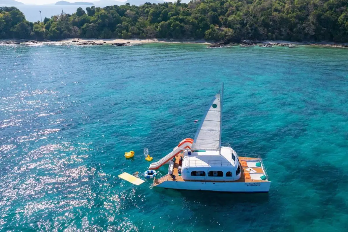 14:30-15:30 Остров Майтон — отличное место для снорклинга с красочными рыбками и коралловыми рифами. Также доступны морские развлечения: водные горки, прозрачный каяк, сап-борд и надувные круги.
