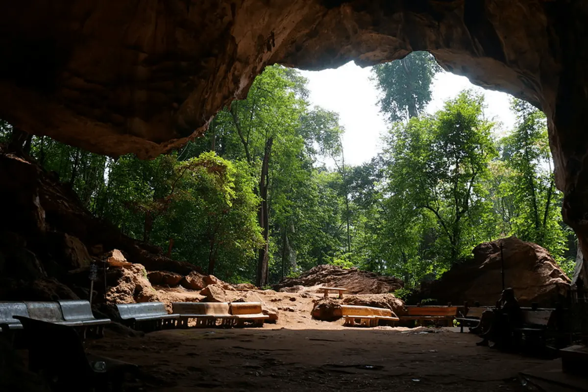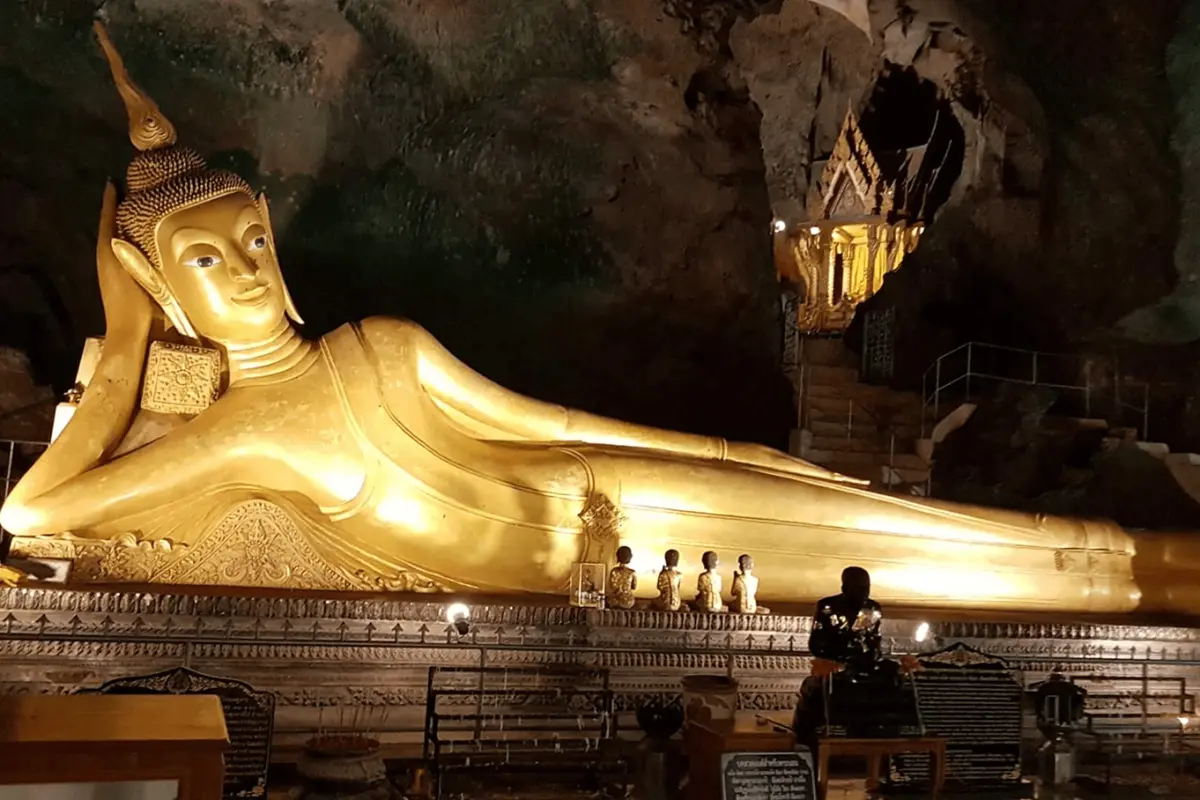 Пещерный храм Ват Суван Куха (храм Лежащего Будды), где живут обезьяны.