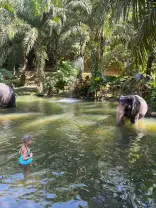 Отличная, лёгкая экскурсия! Пообщались со слонами. Если боитесь высоты, на слонах возможно будет не комфортно, но можно на них не кататься, за то потом покормить их и покупаться с ними. Прокатились на бамбуковых плотах, есть возможность самому порулить плотом. Лёгкий обед. Посетили водопад. Прохладная водичка с рыбками.