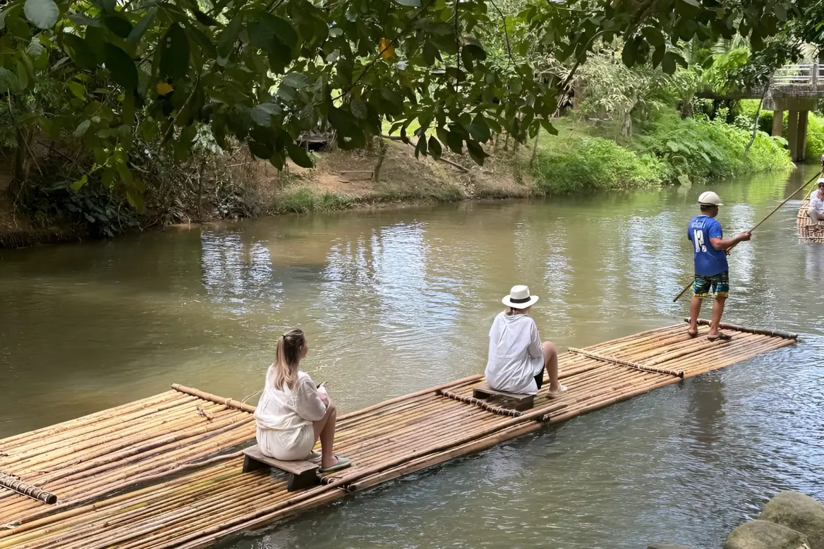 Сплав на бамбуковых плотах - прогулка по спокойной горной реке среди тропических джунглей, лиан и высоких деревьев.