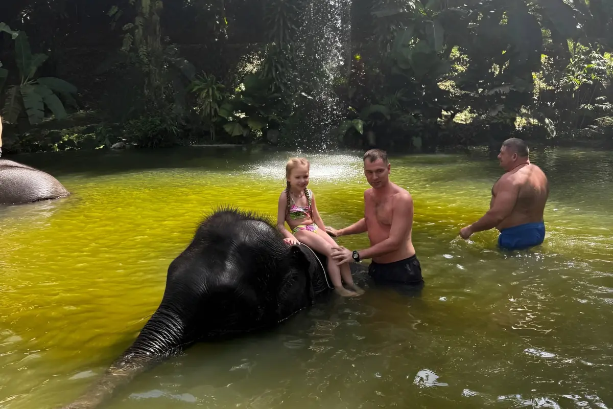 Купание в реке со слонёнком - весёлое и трогательное занятие, которое приносит удовольствие и детям, и взрослым.