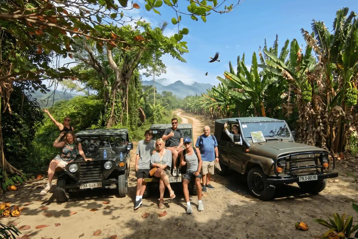 Посмотрите окрестности Нячанга на джипах: культурные места, деревни, поля, военные бункеры, фруктовые плантации и водопад. Маршрут сочетает местный быт, историю Вьетнамской войны, короткий трек в джунглях и обед.