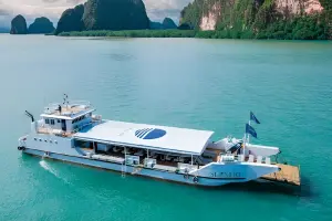 Круиз на огромном диско-катамаране по заливу Пханг Нга с посещением острова Джемса Бонда. Обед шведский стол: премиальная тайская, китайская и японская кухня. Водные развлечения: горки, сапы и водяные гамаки. Ужин на закате и вечеринка под музыку от DJ.