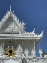 Первым по программе перед нами предстал великолепный белоснежный буддийский храм. Под лучами полуденного солнца он переливался будто огромный снежный дворец, стены которого искуссно украшены интересными узорами.