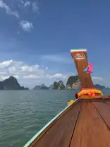 Рассекая водную гладь на длиннохвостой традиционной тайской лодке мы посетили множество интереснейших мест. Сделали остановку вблизи знаменитого острова Джеймса Бонда, погуляли по плавучей деревне морских цыган, залезли в пещеру в гости к летучим мышкам.