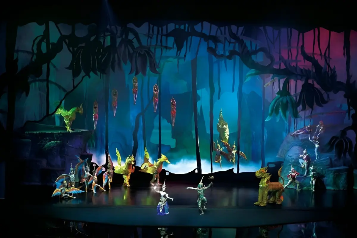 Спецэффекты, трюки, танцующие животные, яркие декорации и субтитры на русском языке.