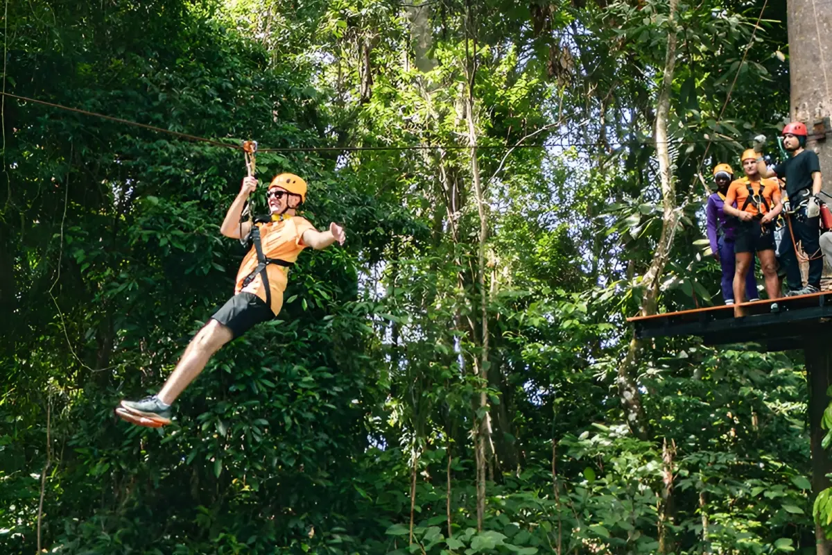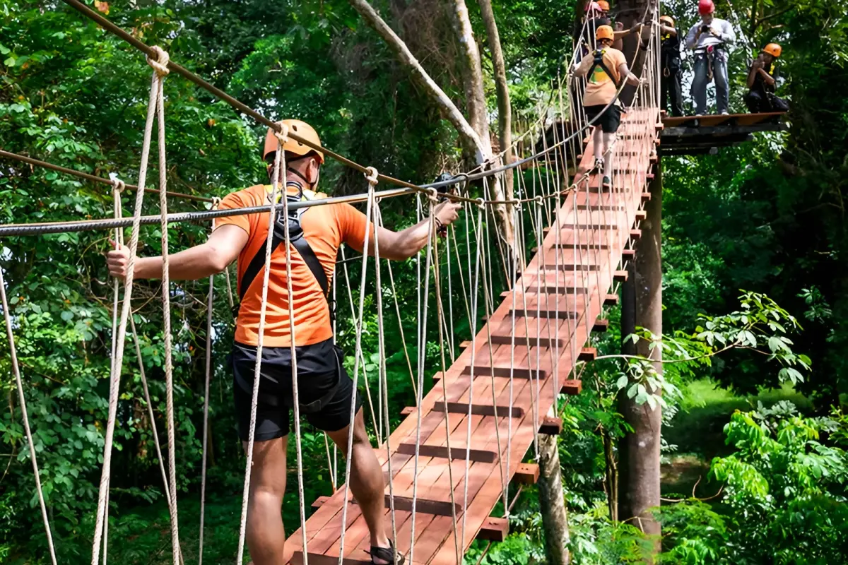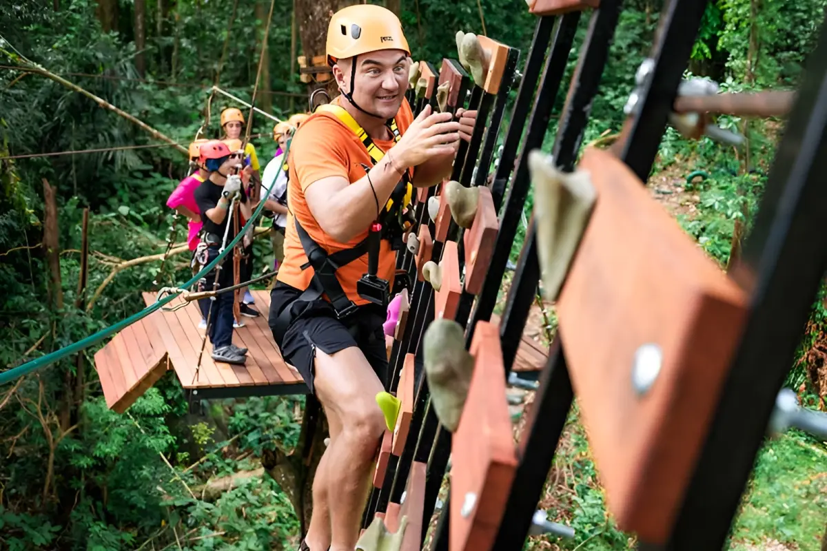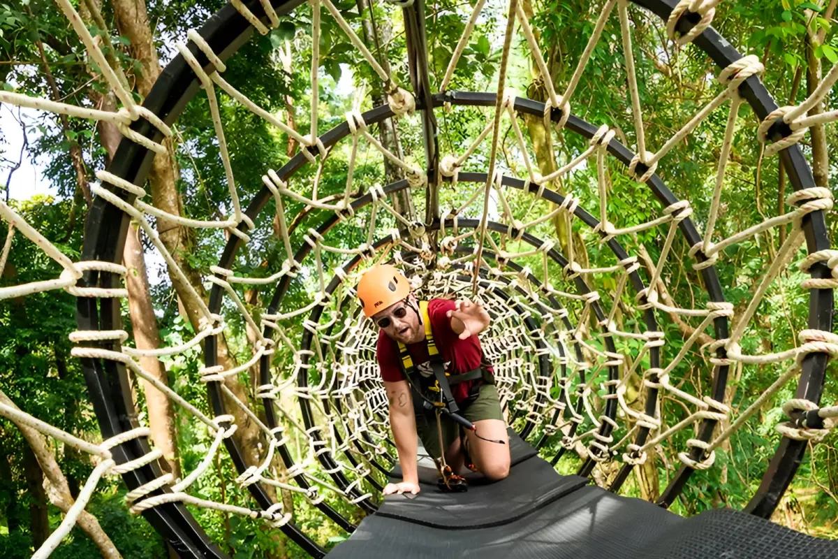 Sky Rock - это зиплайны, подвесные мосты, скалодромы и 30-метровые спуски среди тропической зелени.