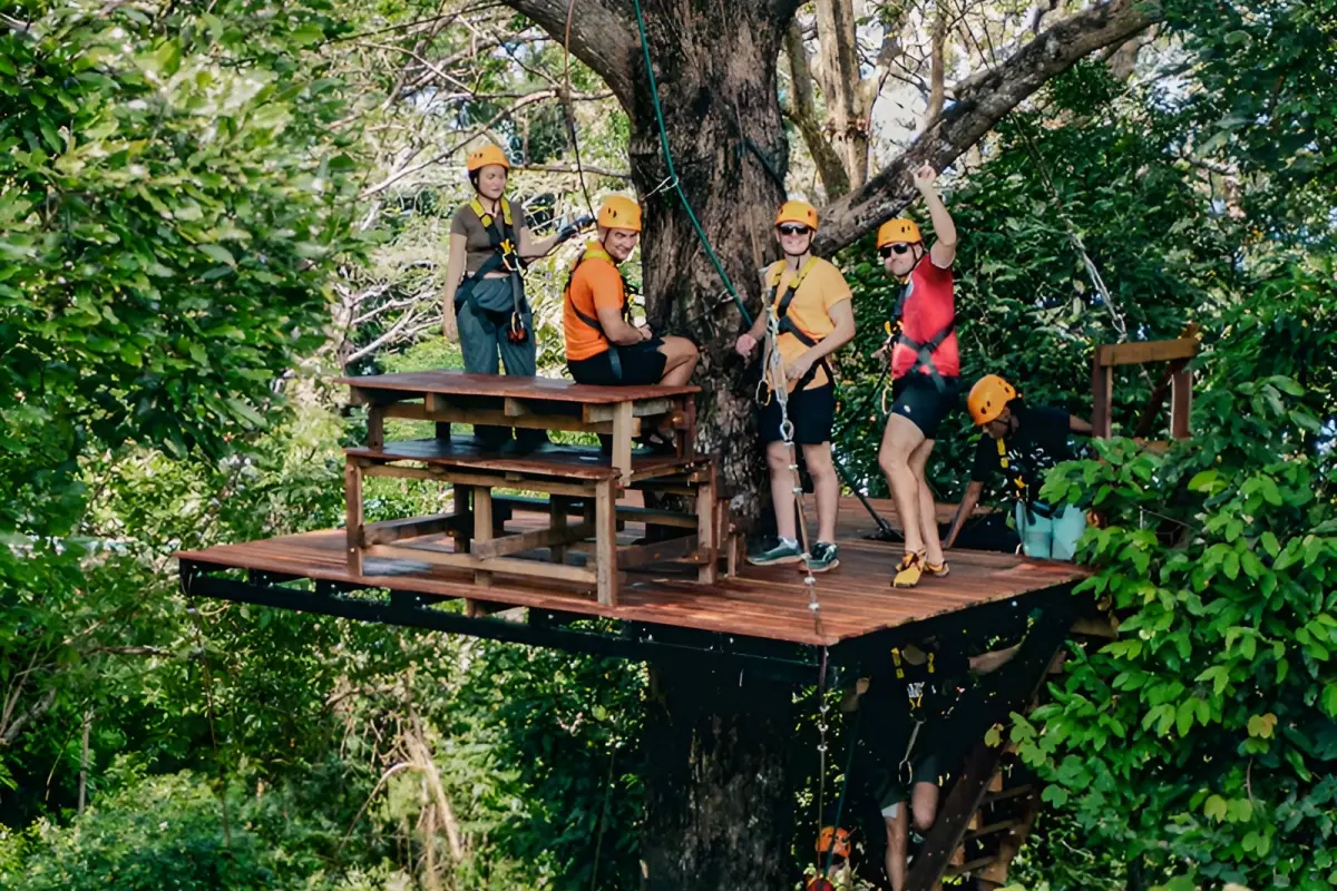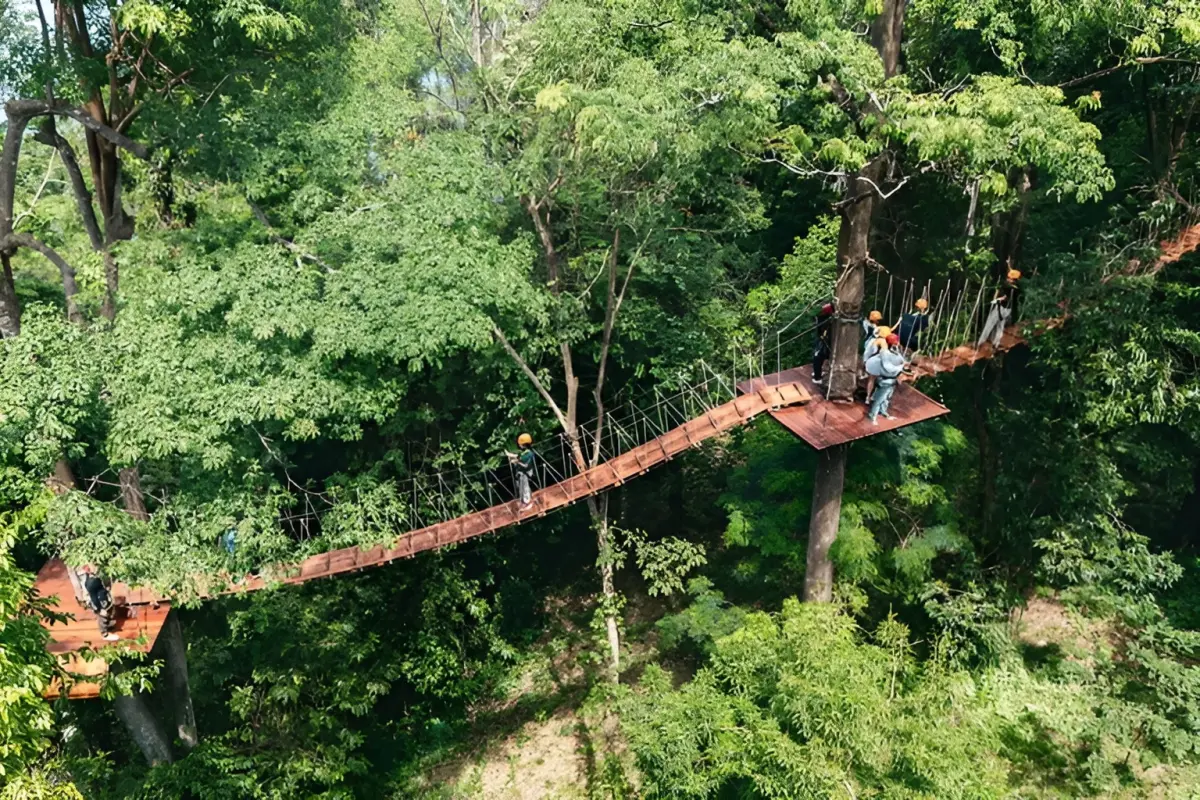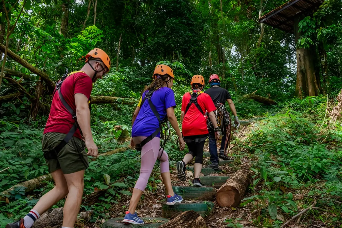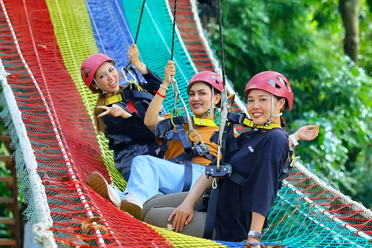 Sky Rock - это зиплайны, подвесные мосты, скалодромы и 30-метровые спуски среди тропической зелени.