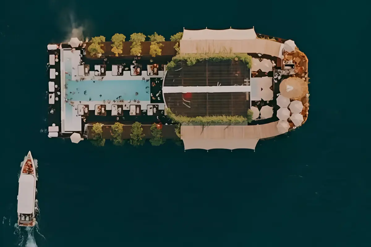 Yona - это плавучий трёхэтажный пляжный клуб, созданный специально для вечеринок формата "wow".